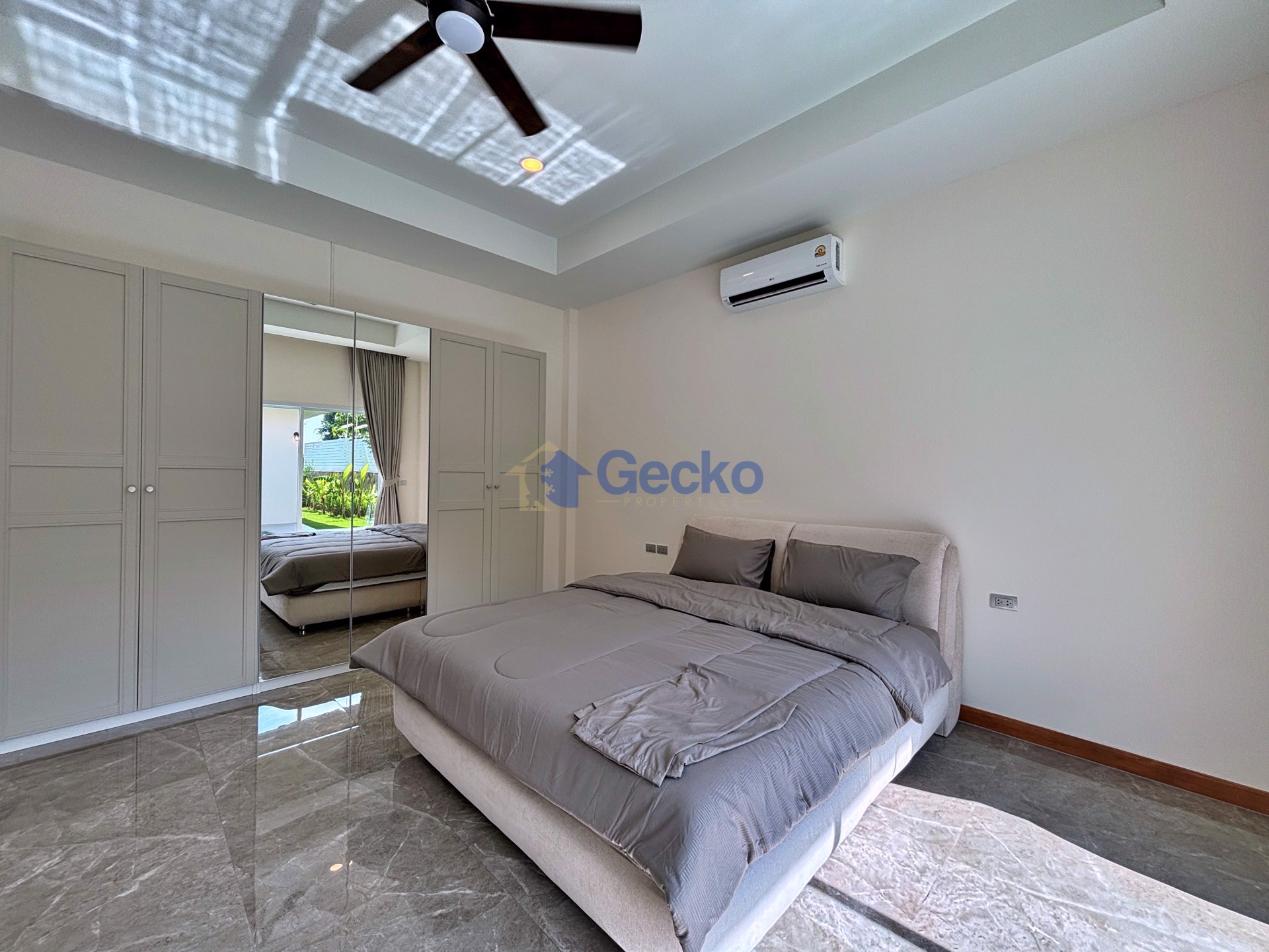 Nestled in the peaceful surroundings of East Pattaya, this beautiful single-storey home combines modern living with tropical charm. Set on a 492 sqm plot, the property offers a generous 280 sqm of living ...