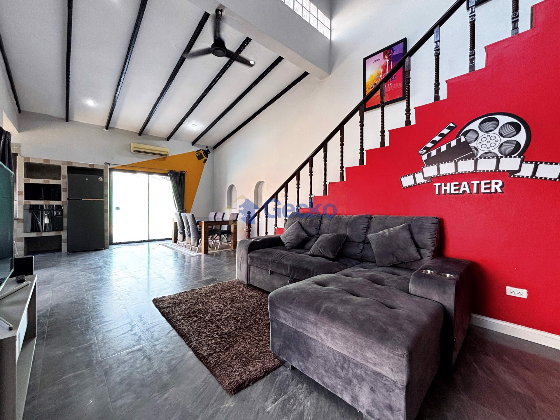 Discover relaxed tropical living in this fully furnished two-storey home located in the well-regarded Palm Spring Housing development in East Pattaya. Set on a generous 444 sqm land plot with a comfortable ...