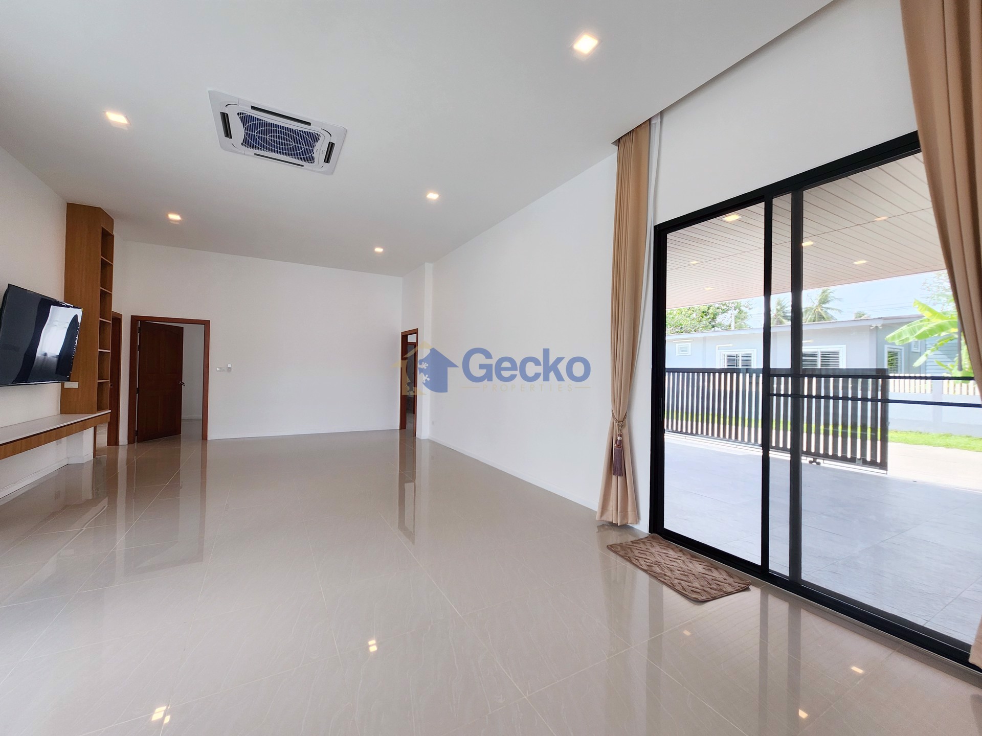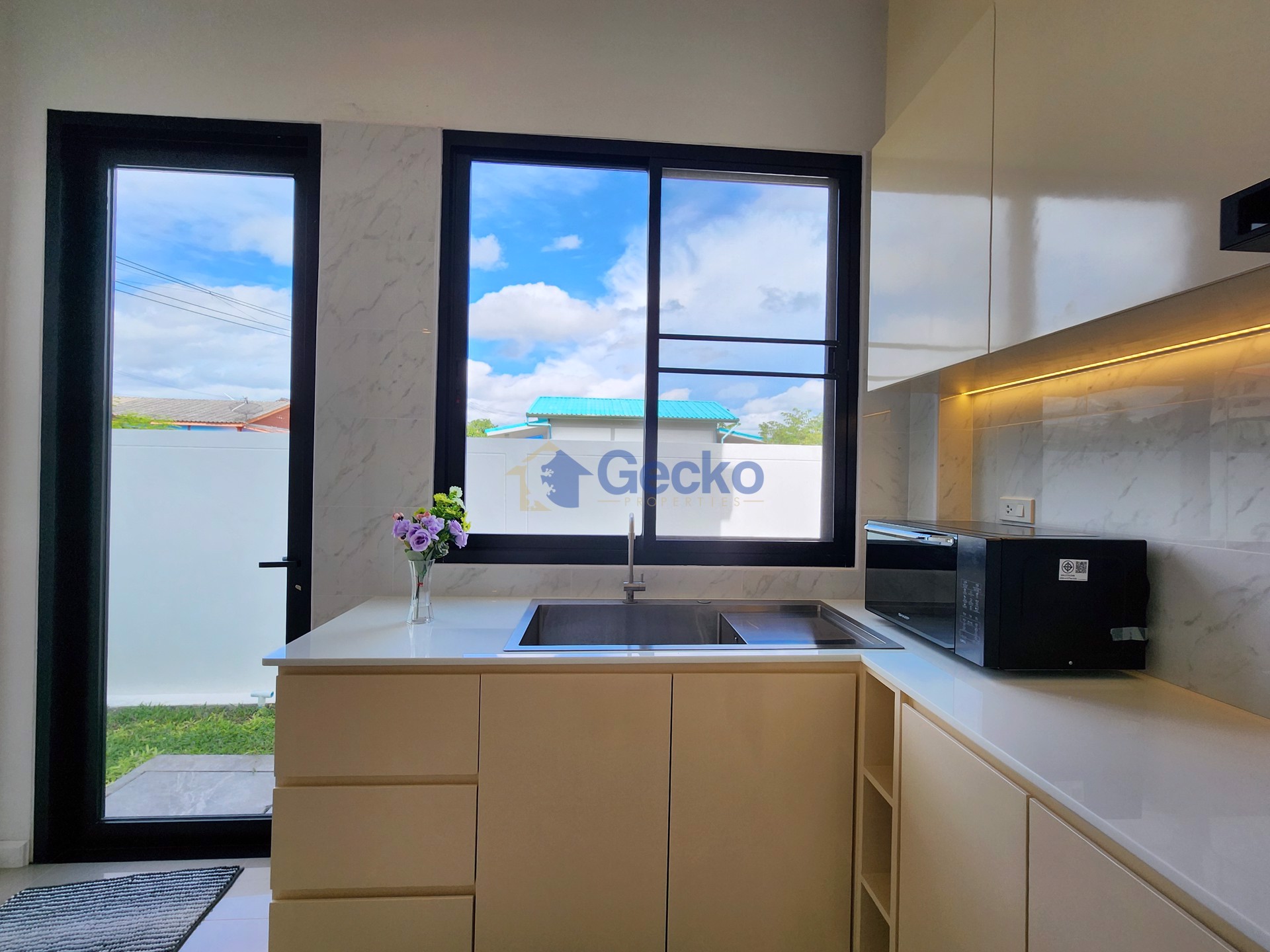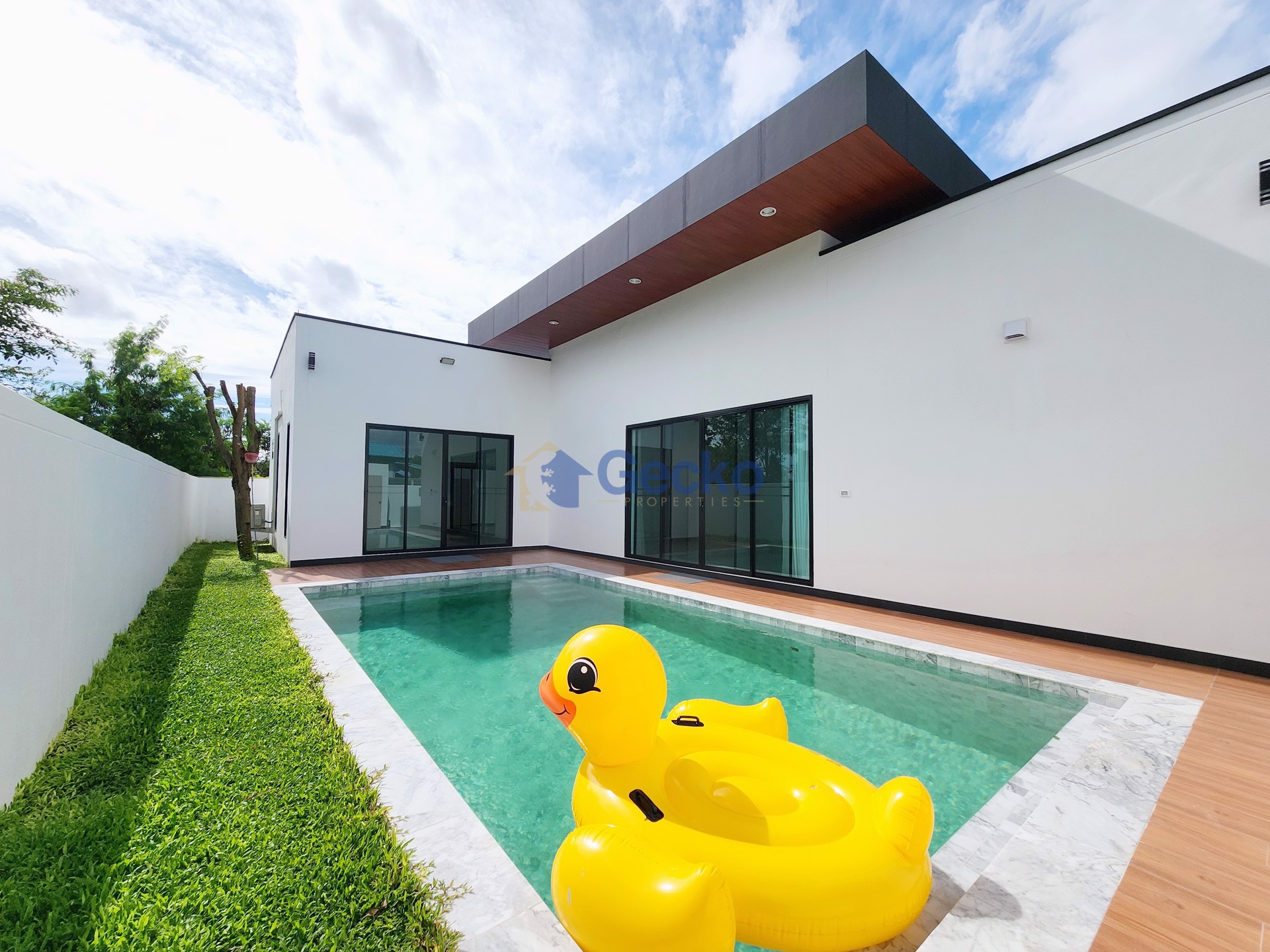 This elegant single-storey home in East Pattaya combines modern design with the comfort of a private suburban retreat. Situated on a generous 368 sqm plot with 200 sqm of living space, the residence is ...
