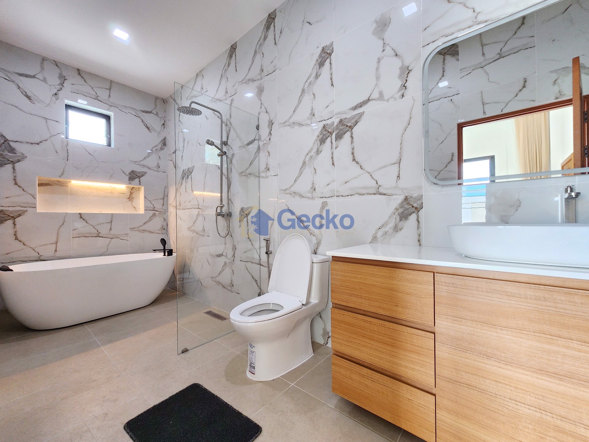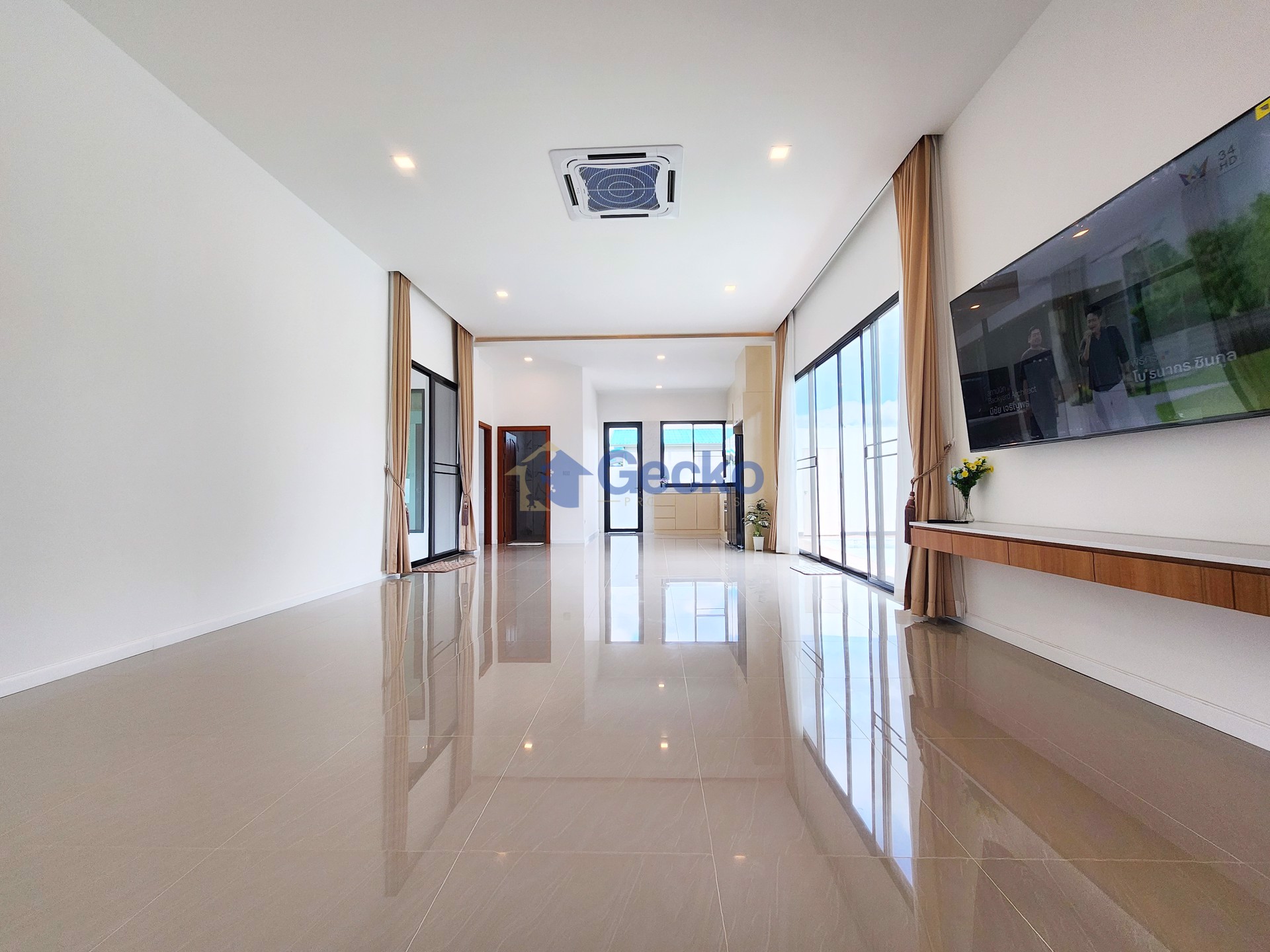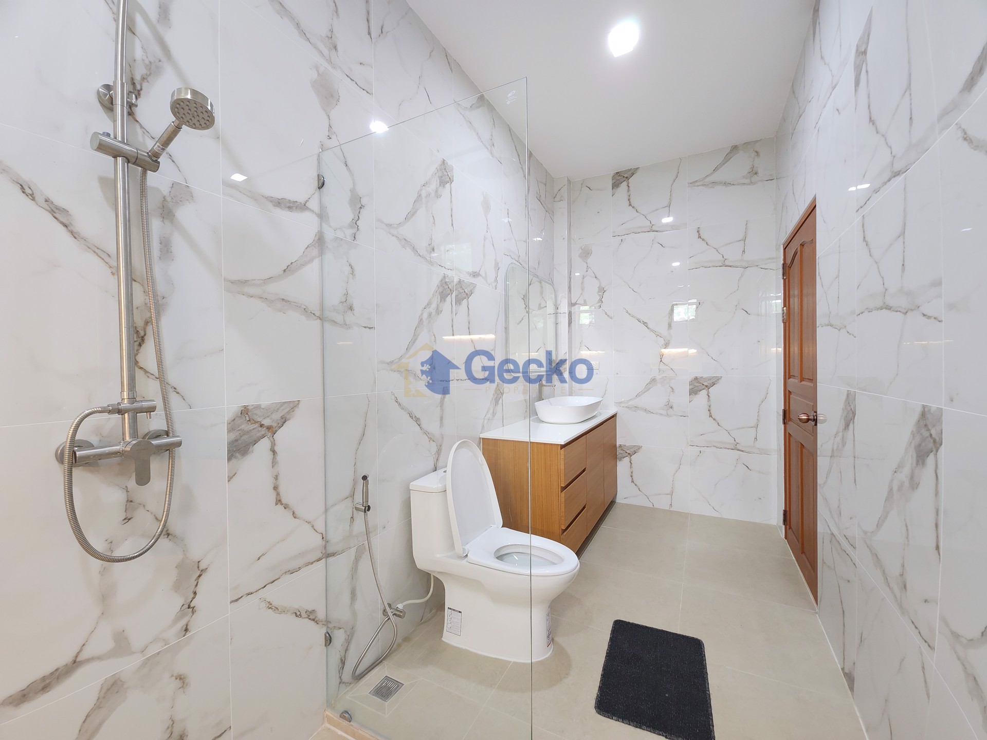 This elegant single-storey home in East Pattaya combines modern design with the comfort of a private suburban retreat. Situated on a generous 368 sqm plot with 200 sqm of living space, the residence is ...