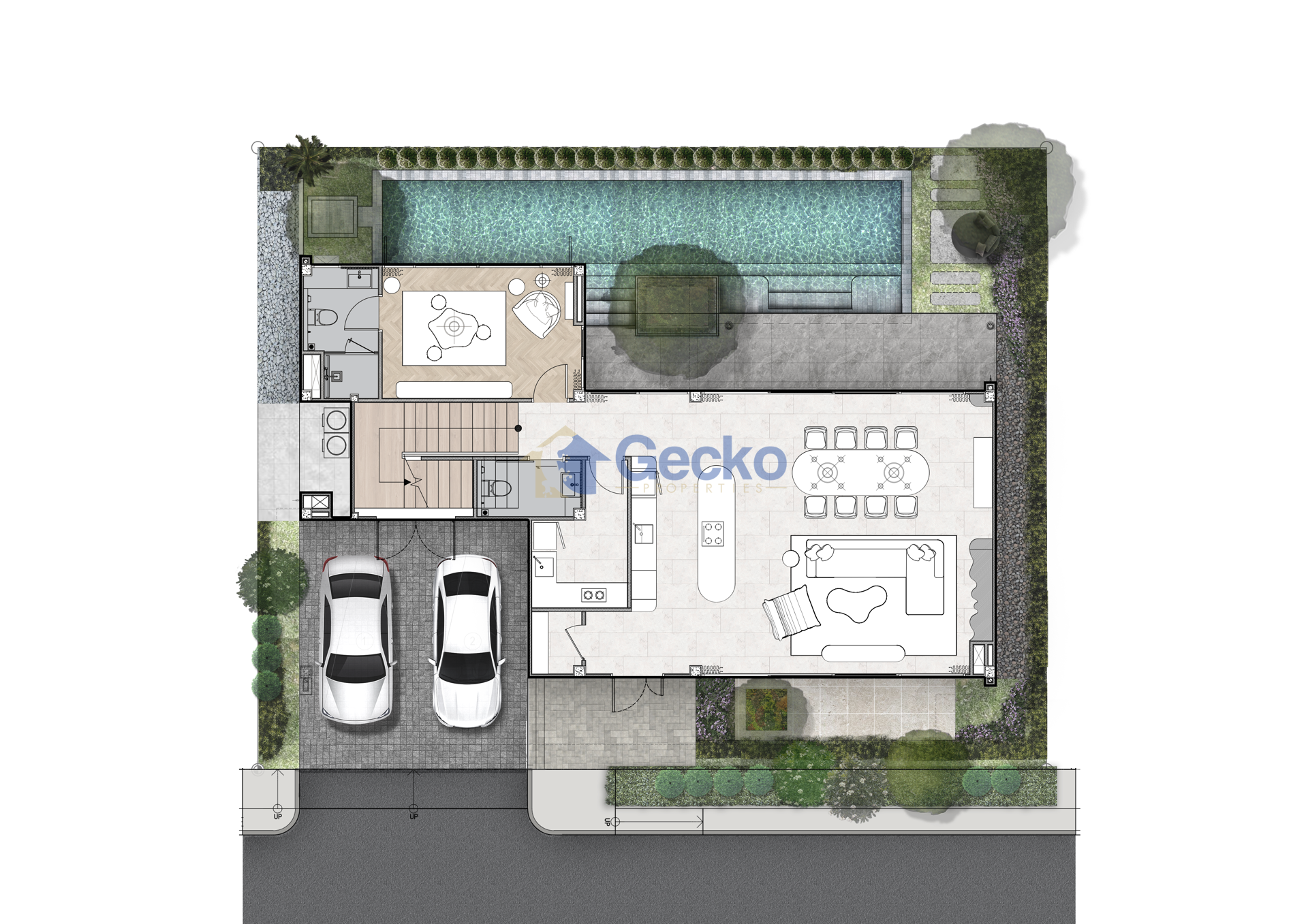This elegant two-storey private pool villa at Solava Pattaya offers refined tropical living within a secure, low-density community of only 29 exclusive homes. Set on a 304 sqm land plot with a generous ...