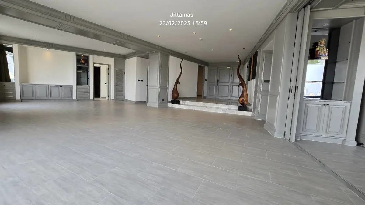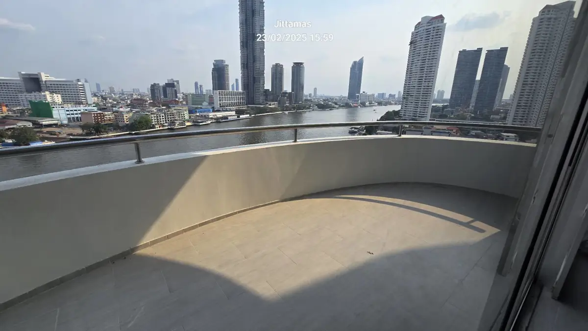 3 bedrooms, 3-bathroom, large living room with large balcony, dining area overlooking full Chao Praya river view, with maid section