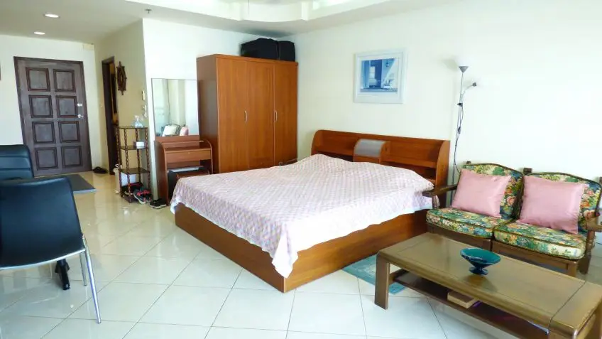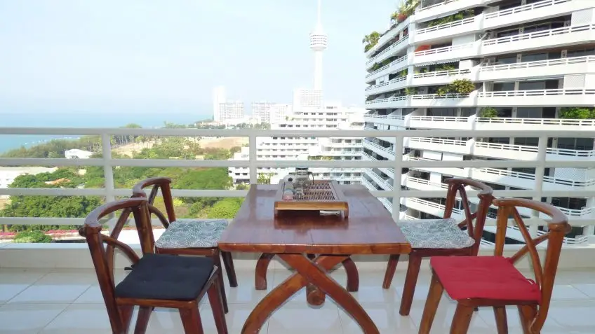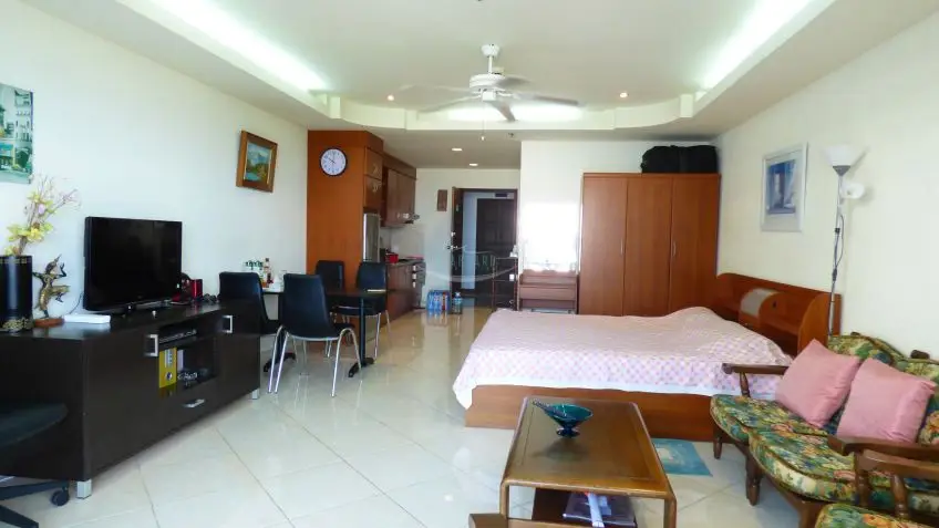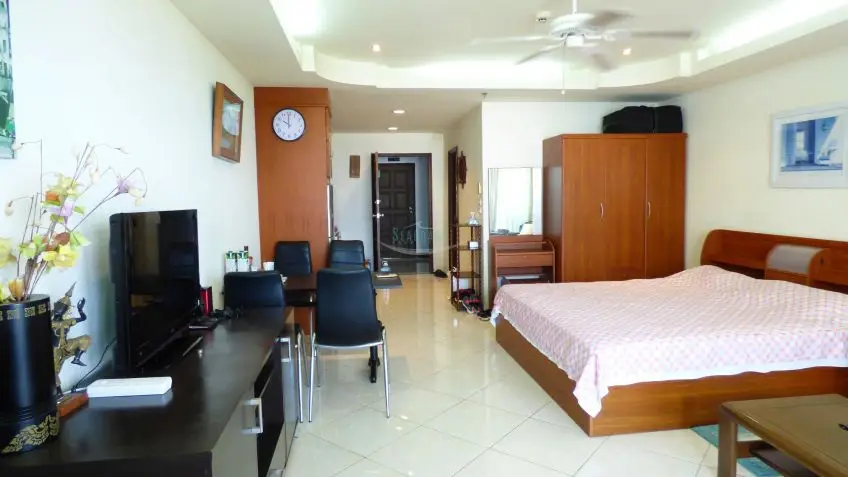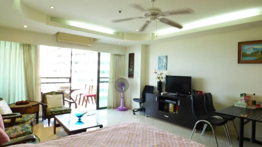 A very presentable Northside studio apartment with a balcony in the beachfront building of the View Talay residential complex.