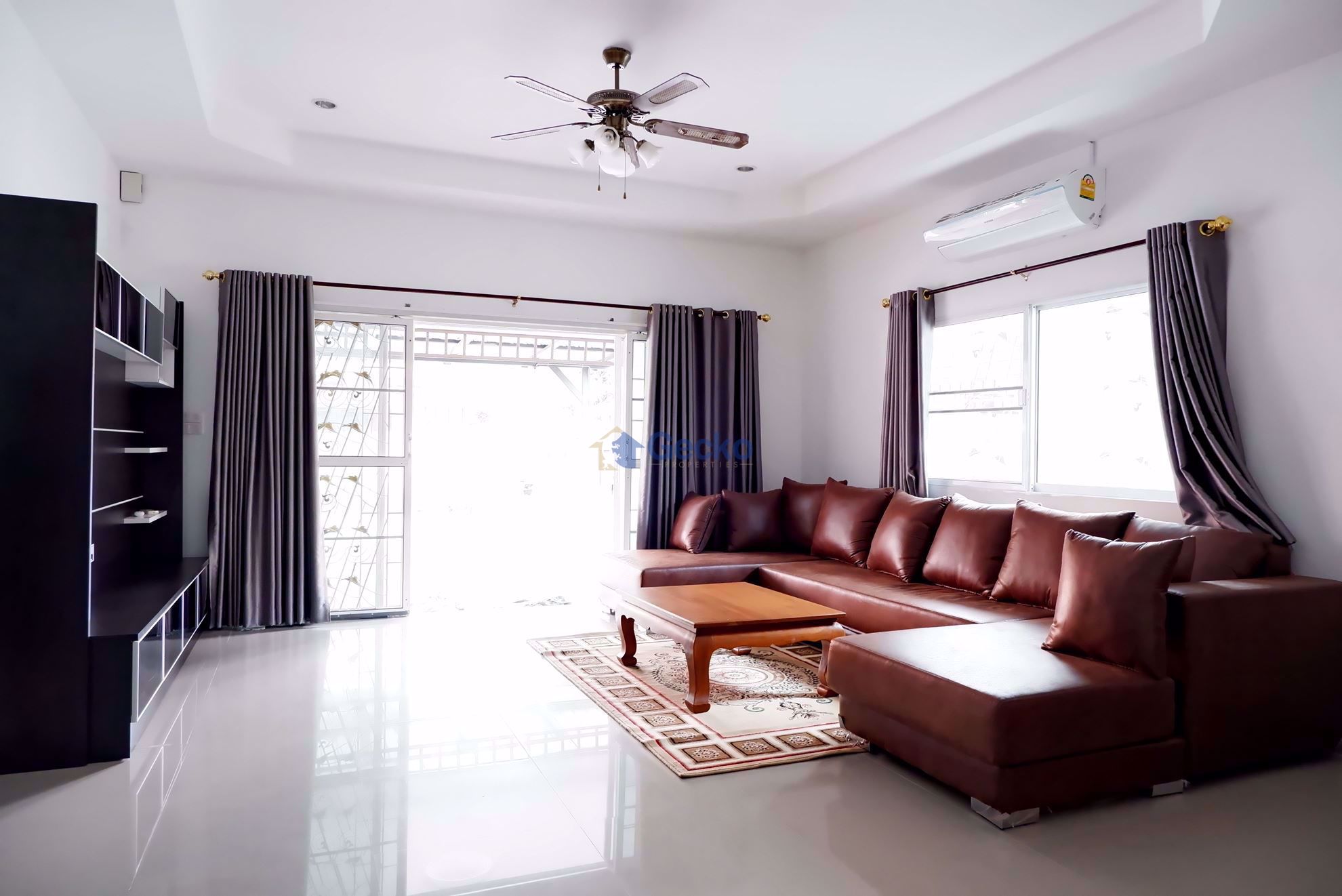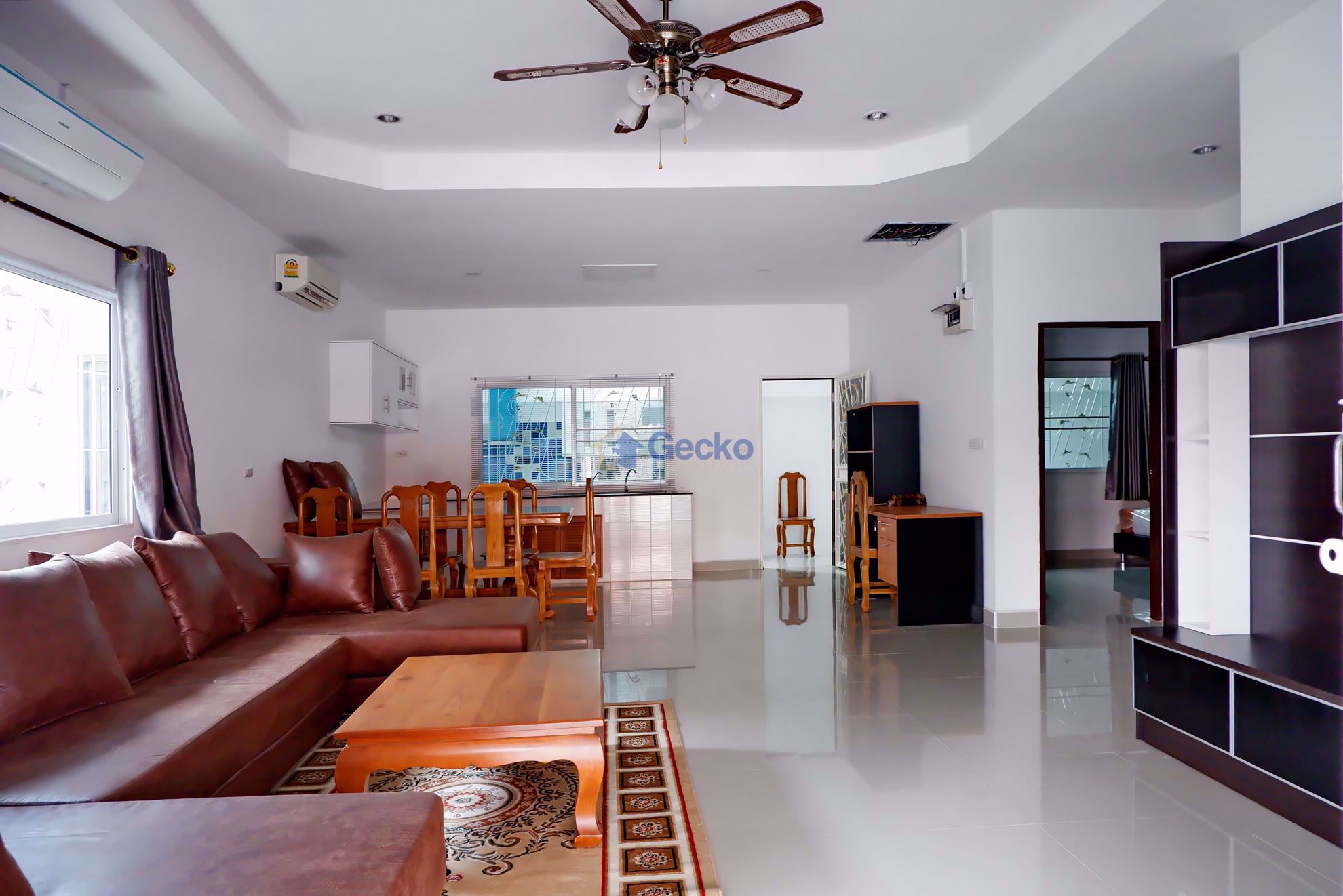 This modern Pattaya house for rent can be found in the "Raviporn City Home Village" in East Pattaya. The house for rent in Pattaya has 2 bedrooms and 2 bathrooms and is built on a 212sqm plot of land and ...