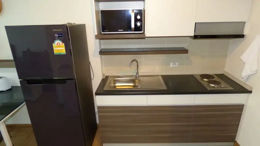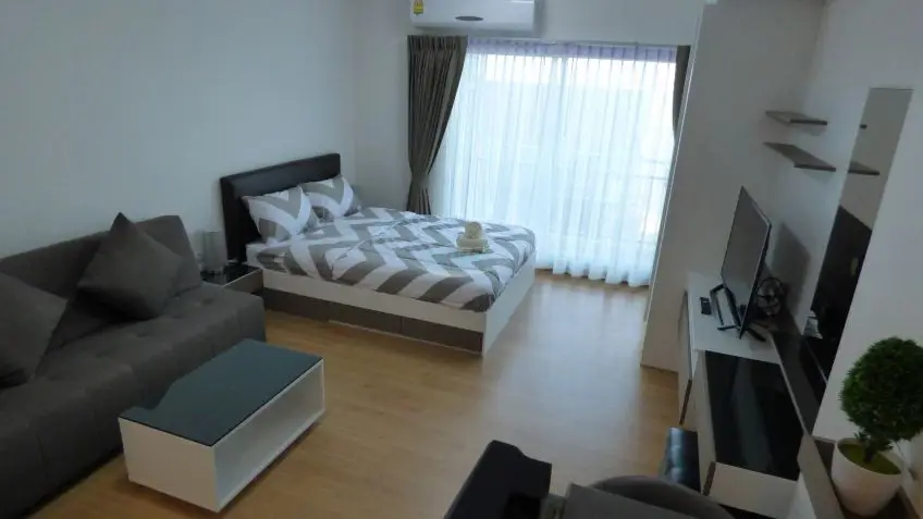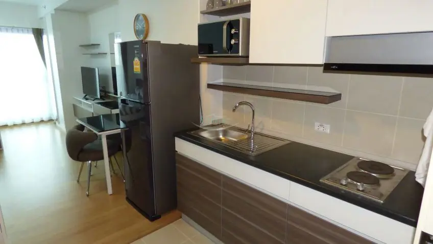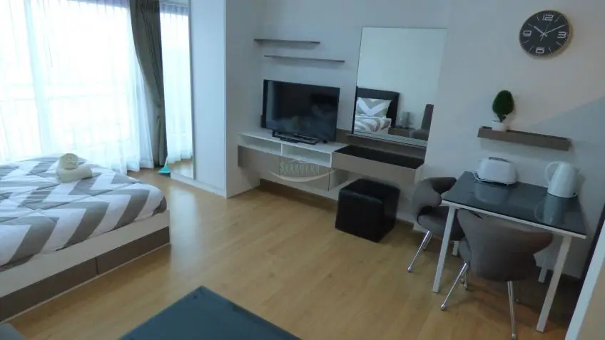 This studio apartment on floor 7 is located in a new high rise development on Thepprasit Road.