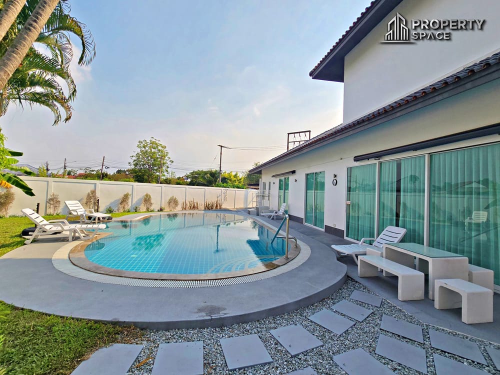 ????This unique 4-bedroom pool villa in Soi Siam, East Pattaya is perfect for renters looking for a standout home with space, privacy, and a design made for both comfortable living and entertaining.