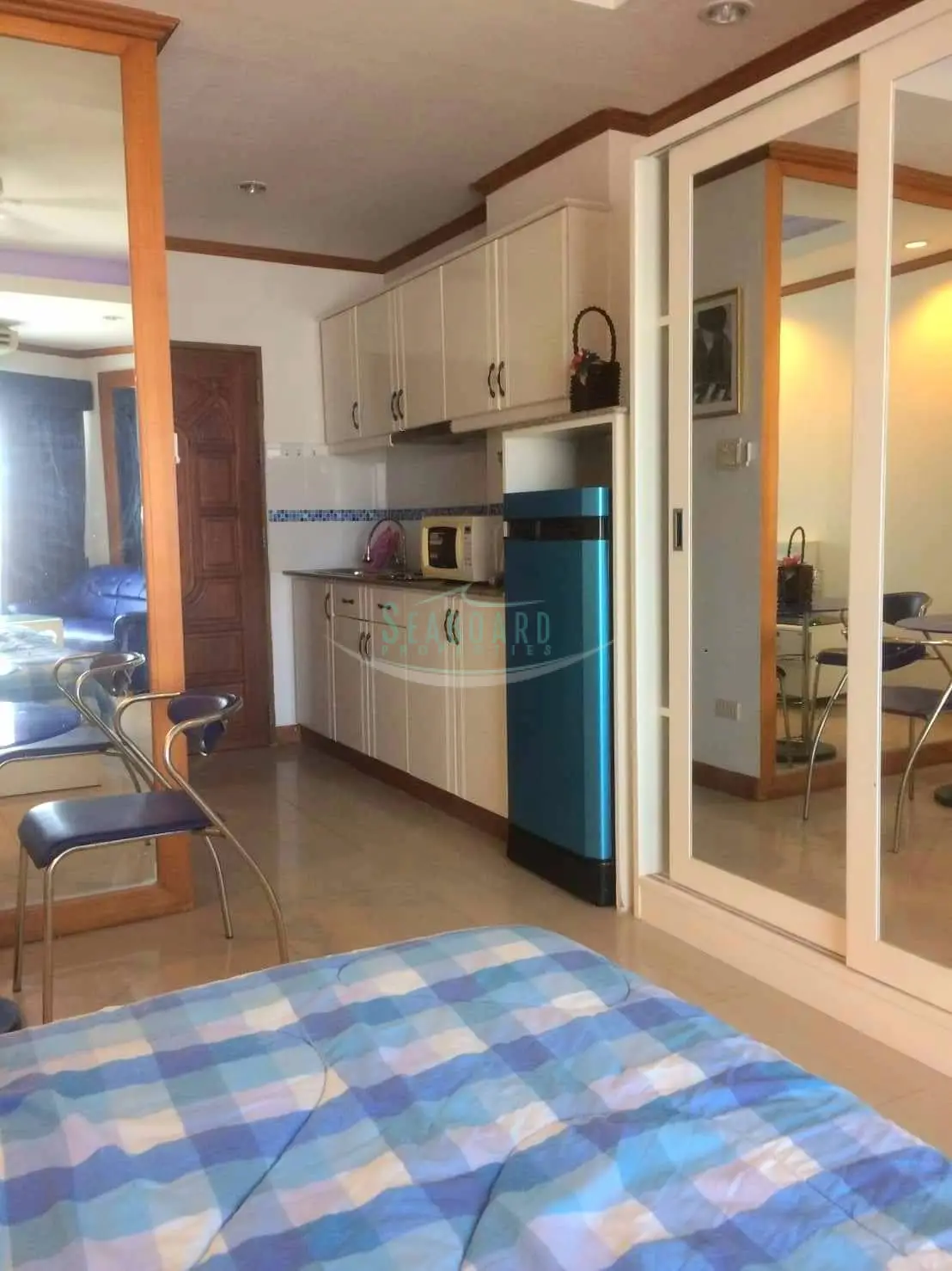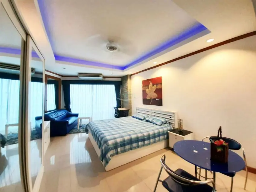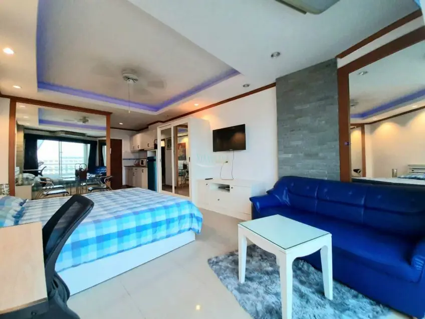 High floor studio condo with balcony in a very convenient location in Jomtien, in walking distance to the beach and many local amenities and directly on the 24/7 bath-bus service.